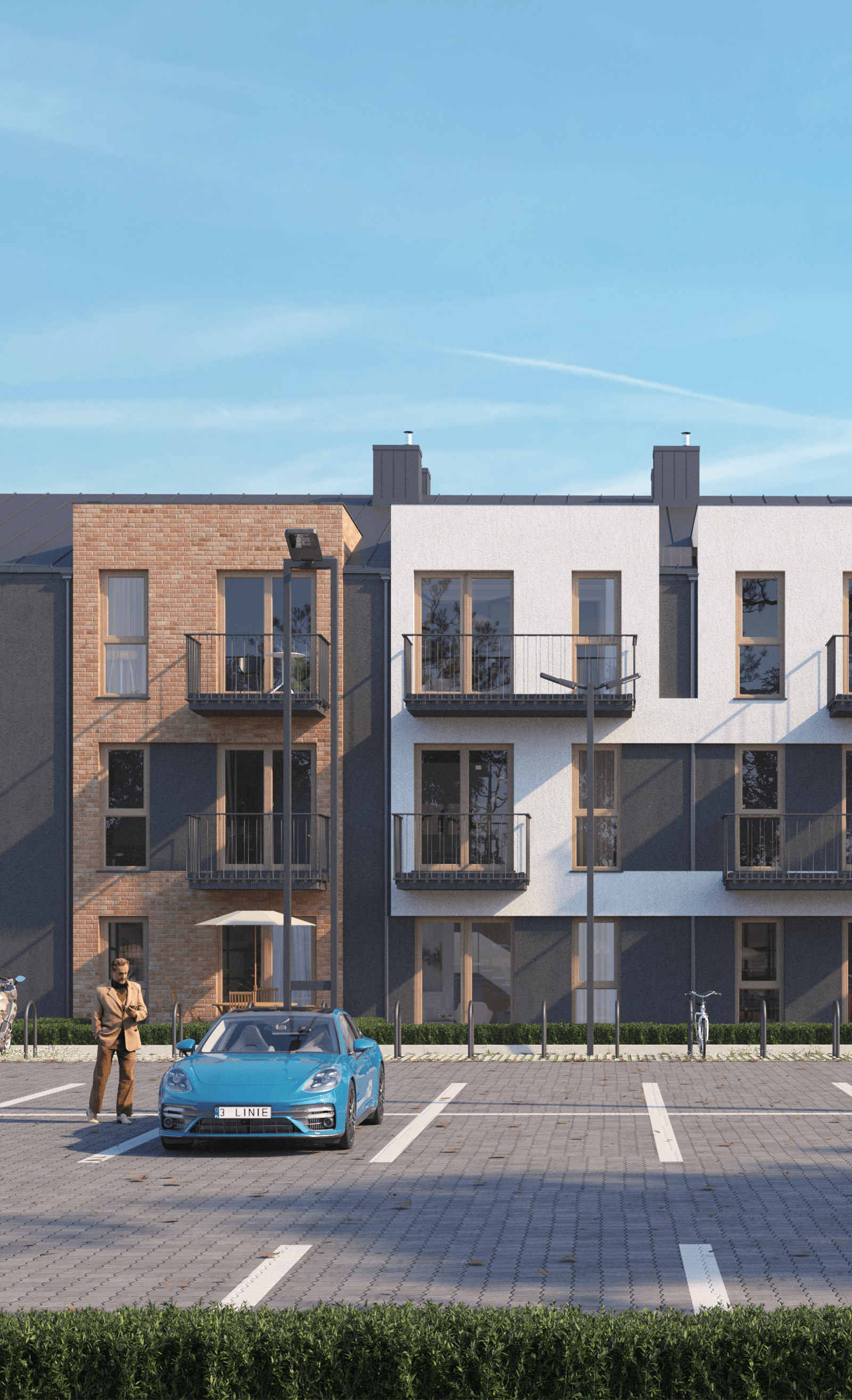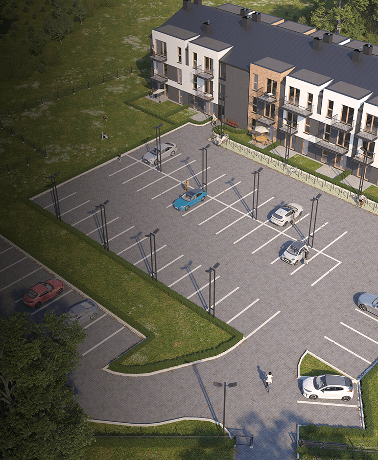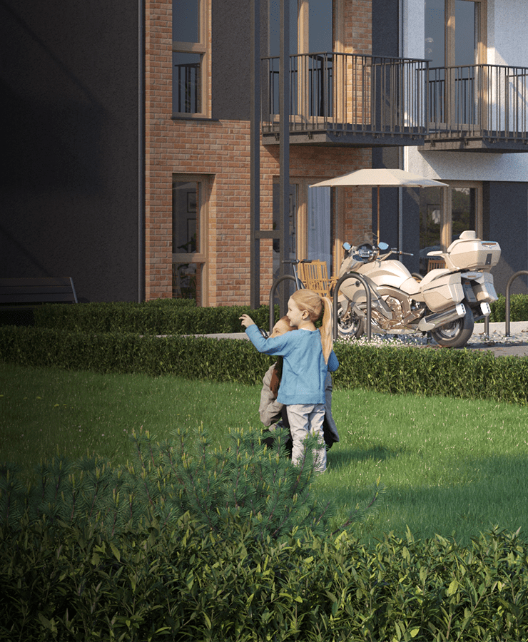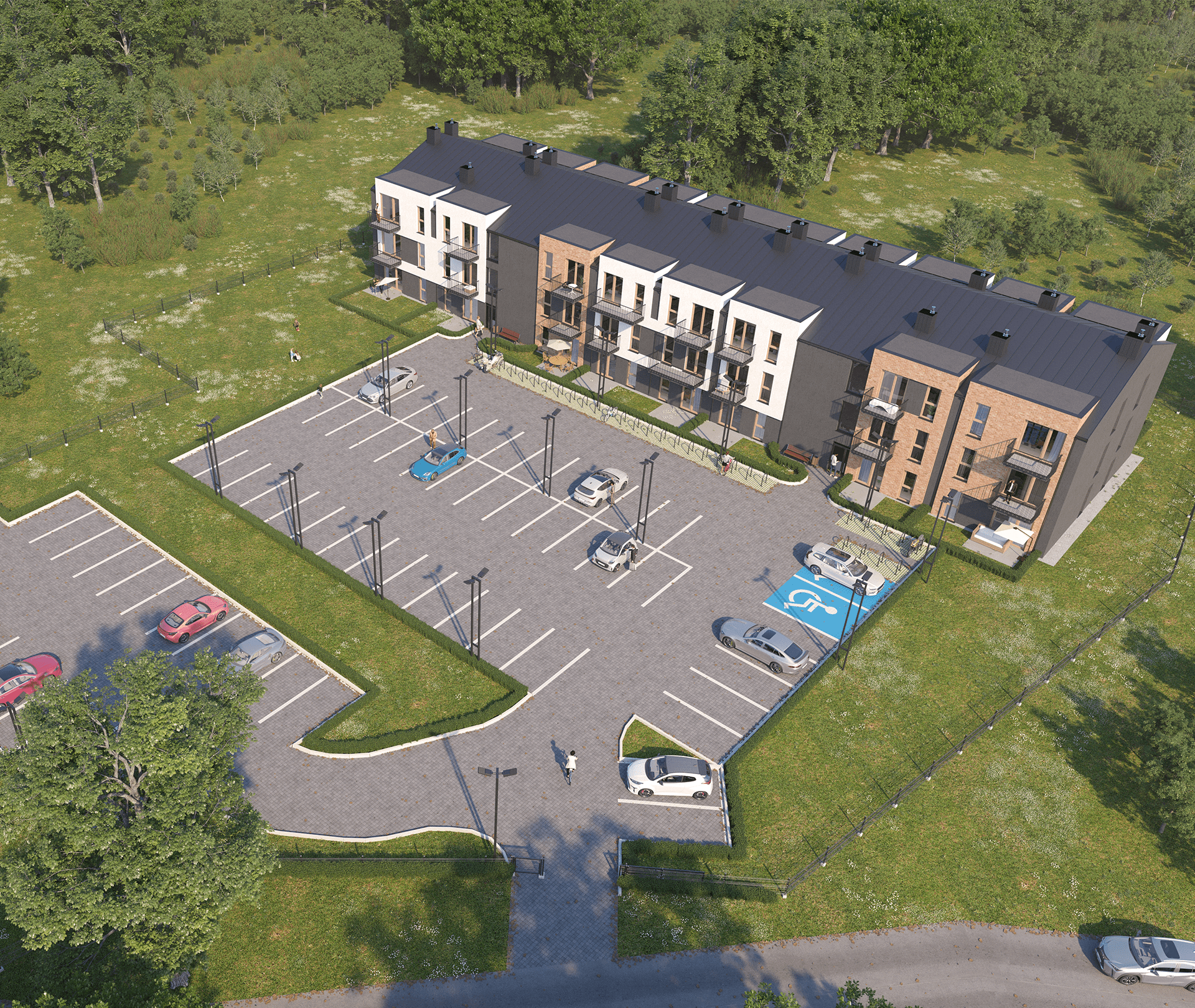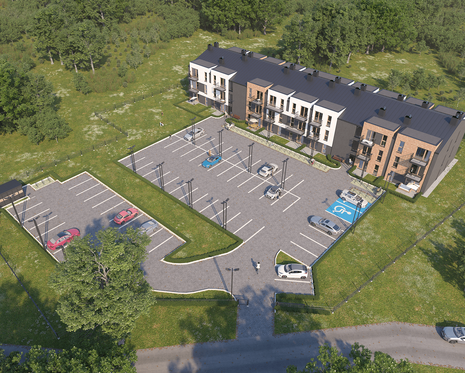 Inwestycja będzie się wyróżniać na tle pozostałych obiektów. Budynki mają ciekawą bryłę i formę architektoniczną, podkreśloną dodatkowo poprzez niejednolitą kolorystykę i zastosowanie na elewacji różnych materiałów wykończeniowych. Przestrzeń wspólna zaaranżowana zostanie z wykorzystaniem zieleni.