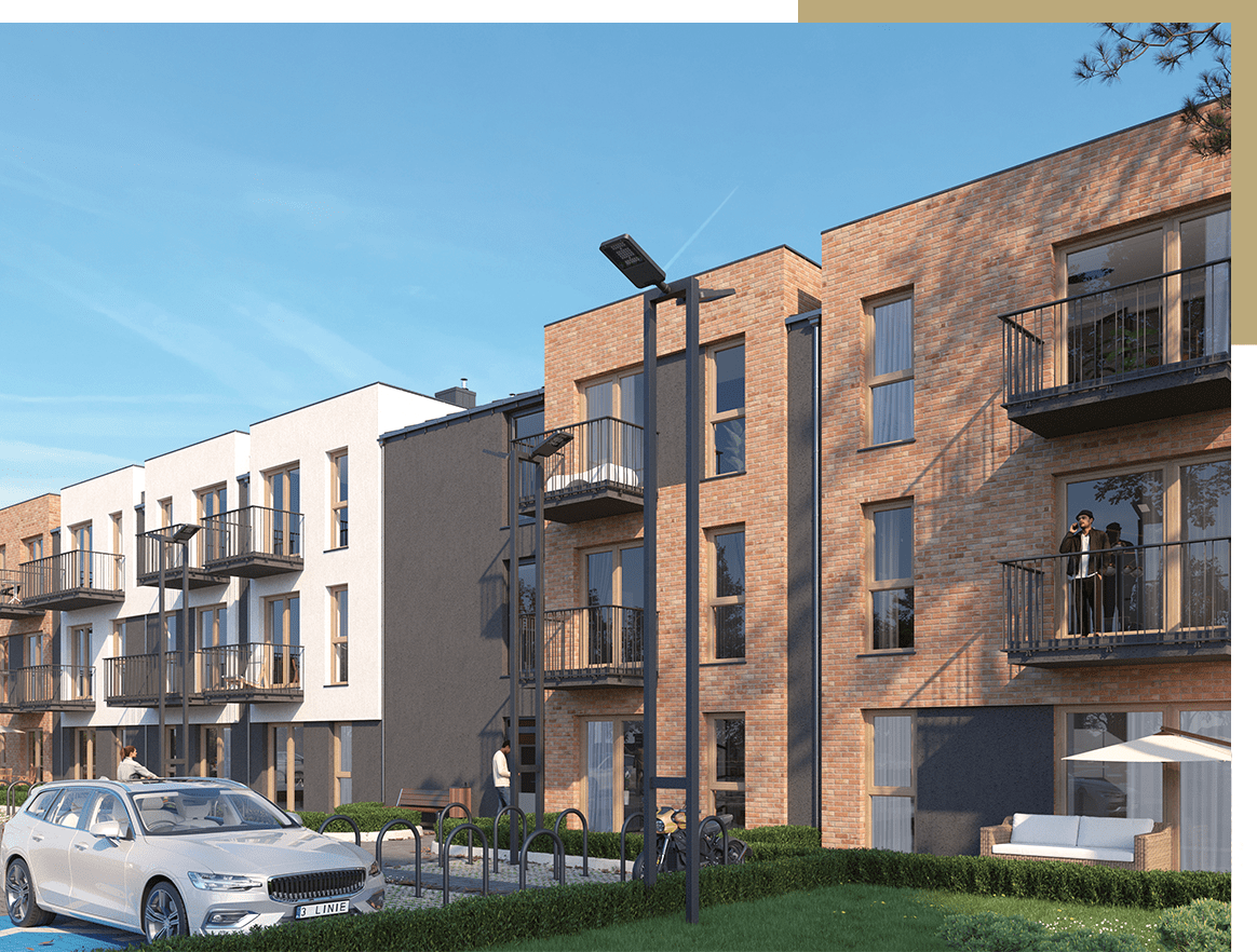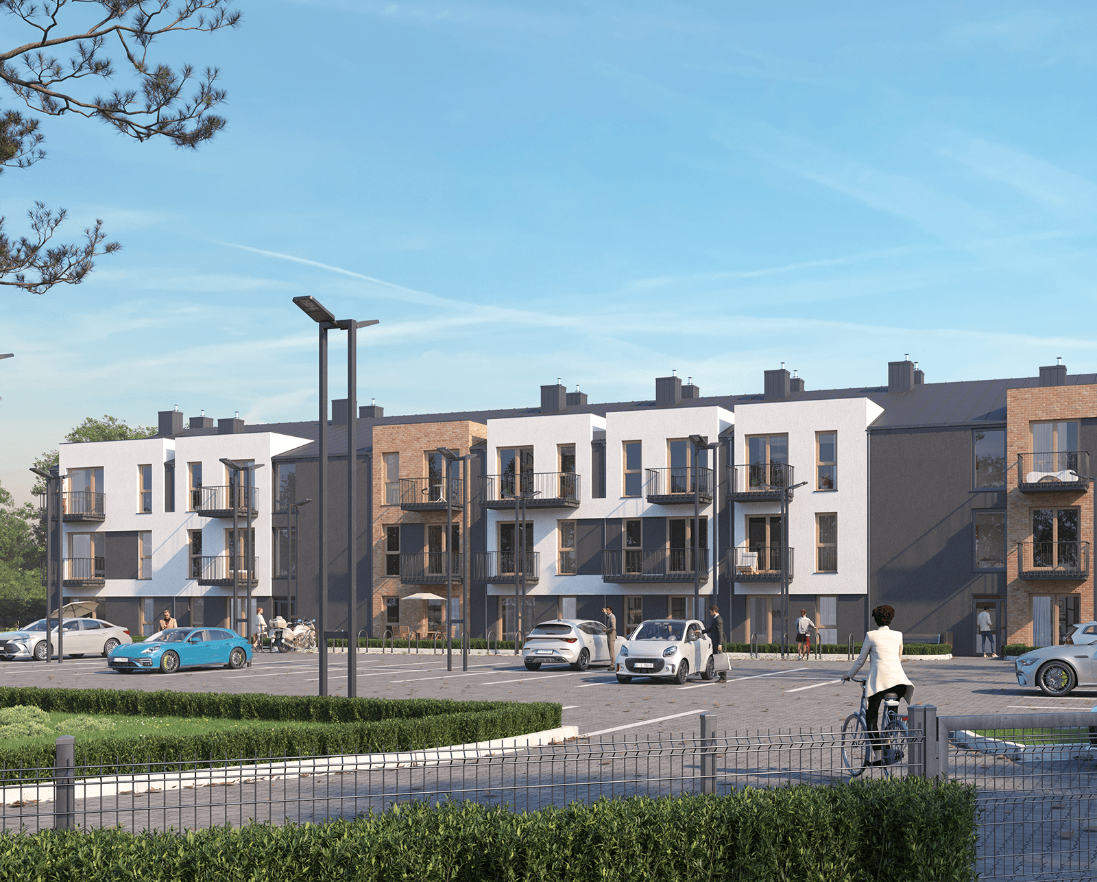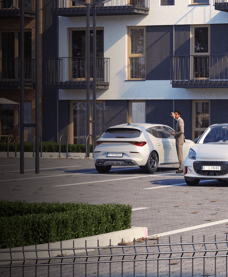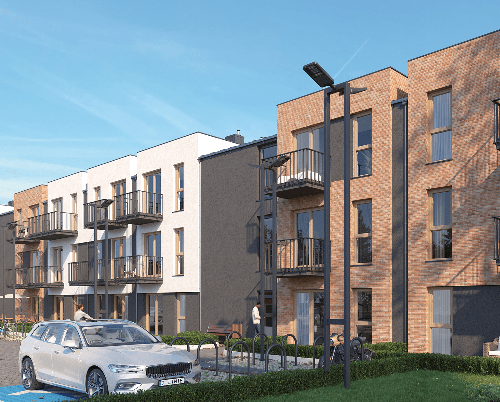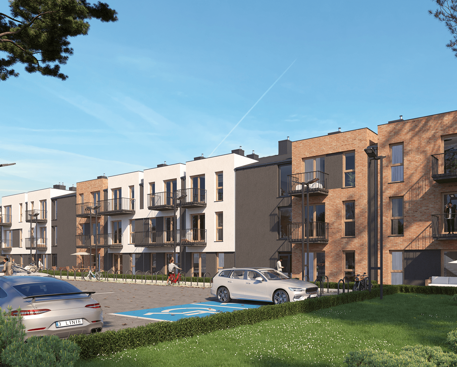 Inwestycja będzie się wyróżniać na tle pozostałych obiektów. Budynki mają ciekawą bryłę i formę architektoniczną, podkreśloną dodatkowo poprzez niejednolitą kolorystykę i zastosowanie na elewacji różnych materiałów wykończeniowych. Przestrzeń wspólna zaaranżowana zostanie z wykorzystaniem zieleni.