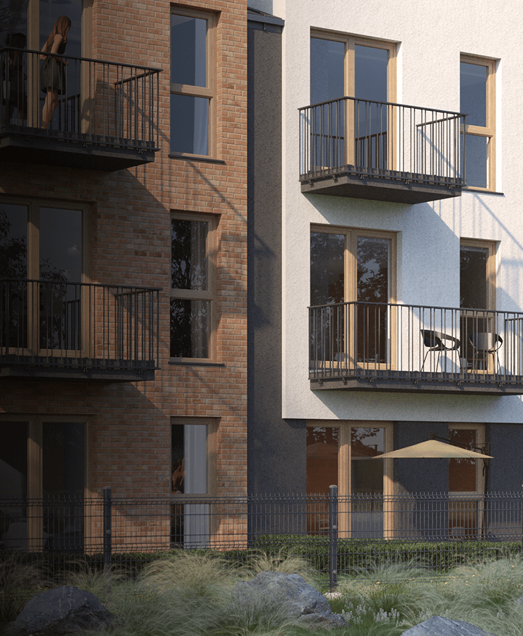 Mieszkania na wyższych kondygnacjach będą miały balkony lub loggie, a lokale na parterze ogródki. Dzięki zastosowaniu dużych okien, lokatorzy będą mogli cieszyć się dłużej naturalnym światłem i przepięknym widokiem na pobliską panoramę.